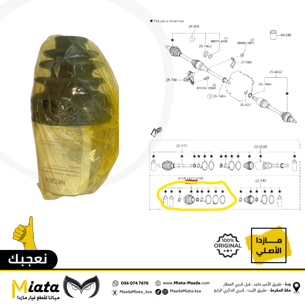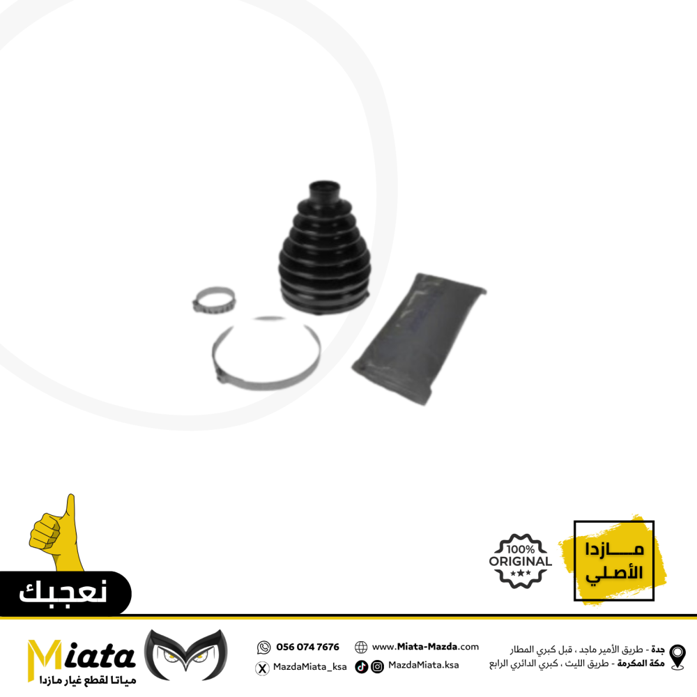 جلدة العكس (CV Boot) في سيارات مازدا هي قطعة مطاطية مرنة مصممة لحماية مفصل العكس (CV Joint) من الأتربة، الغبار، والرطوبة. كما تحافظ على الشحوم داخل المفصل لضمان حركته السلسة وطول عمره الافتراضي. توجد هذه الجلدة في نهايات عمود العكس (Axle Shaft).