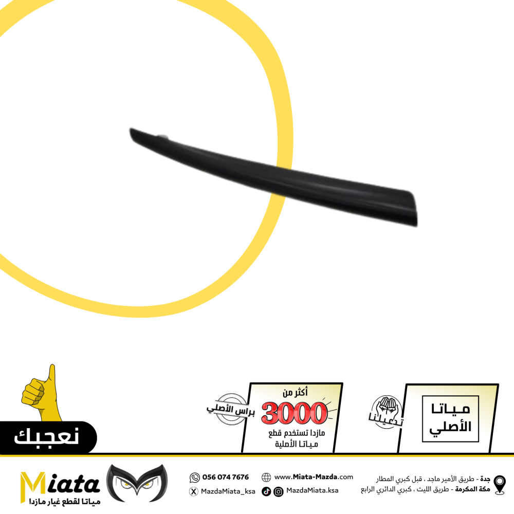 نبذة عن القطعة:ديكور أسود وسط الشبك العلوي (Upper Grille Black Trim) هو جزء من نظام الهيكل الخارجي في مازدا. يُستخدم كديكور لتزيين منتصف الشبك العلوي ...