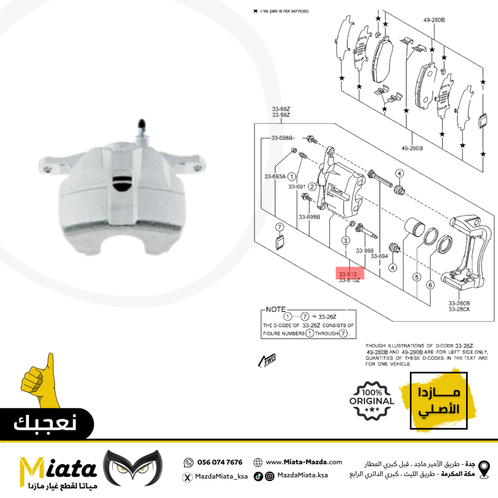 للحفاظ على أداء نظام الفرامل، يُنصح بفحص Rear Brake Caliper بشكل دوري واستبداله عند الحاجة باستخدام قطع غيار أصلية من مازدا.
