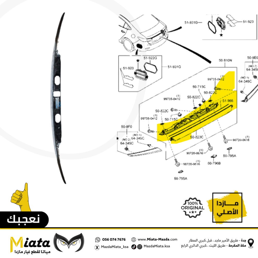 نبذة عن القطعة:نيكل شنطة (Lift Gate Garnish) هو جزء من نظام الهيكل الخارجي في مازدا. يُستخدم كديكور على غطاء صندوق الأمتعة لإضفاء مظهر جمالي على السيا...