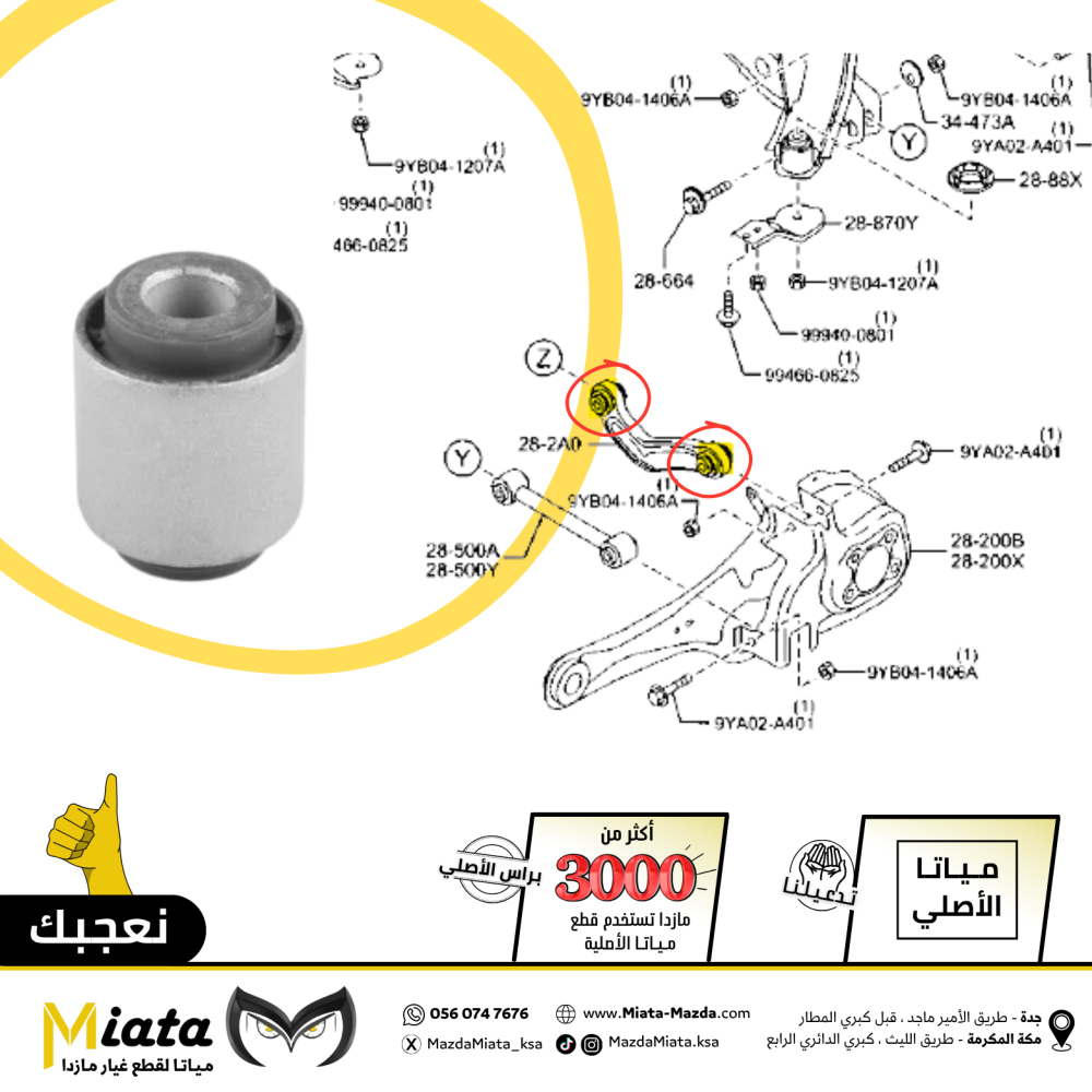 جلود المقص الخلفية (Rear Control Arm Bushings) في سيارات مازدا هي قطع مطاطية صغيرة تعمل كوسيط بين المقصات الخلفية (Control Arms) وجسم السيارة. دورها الأساسي هو امتصاص الصدمات وتقليل الاحتكاك بين الأجزاء المعدنية، مما يساهم في تحسين أداء نظام التعليق الخلفي.