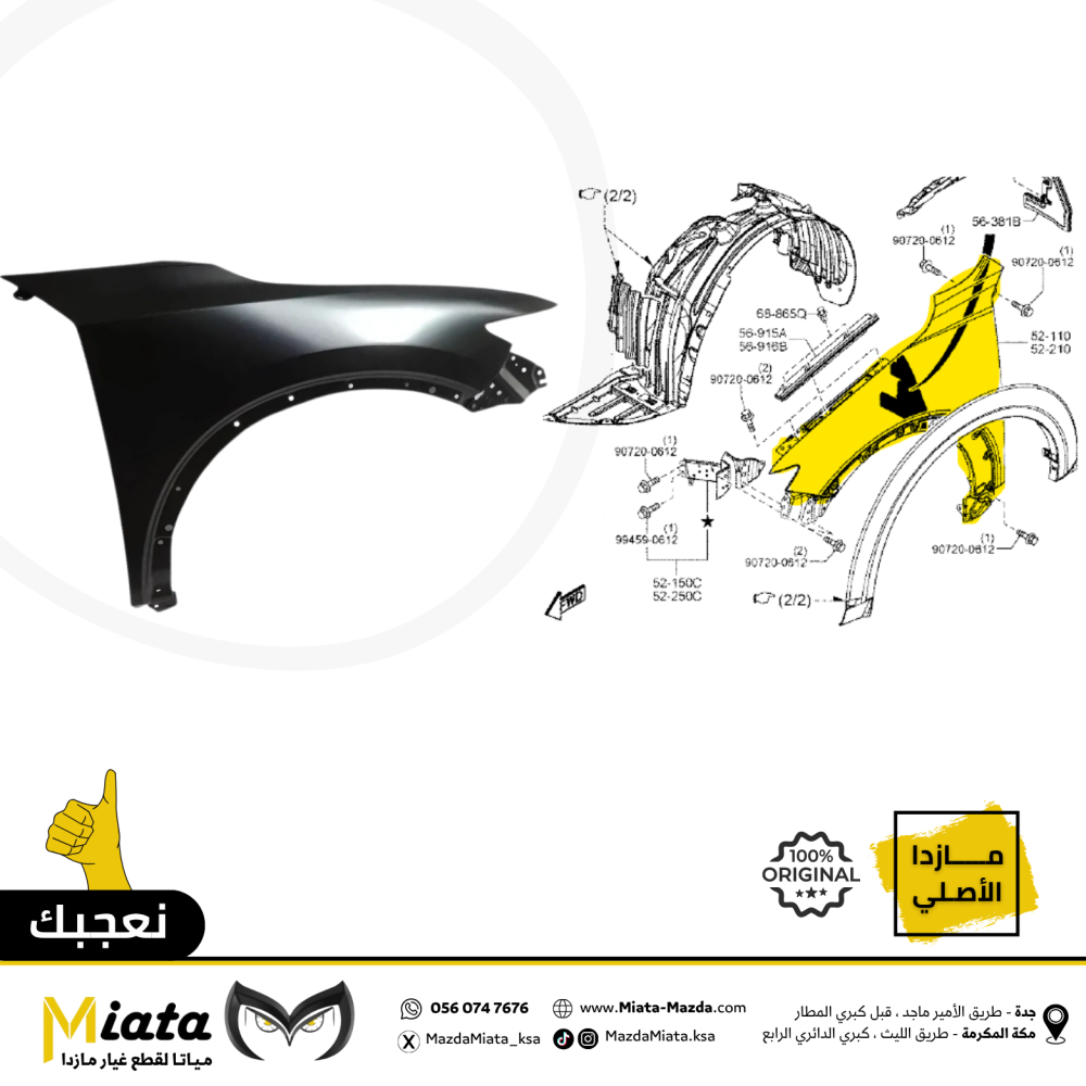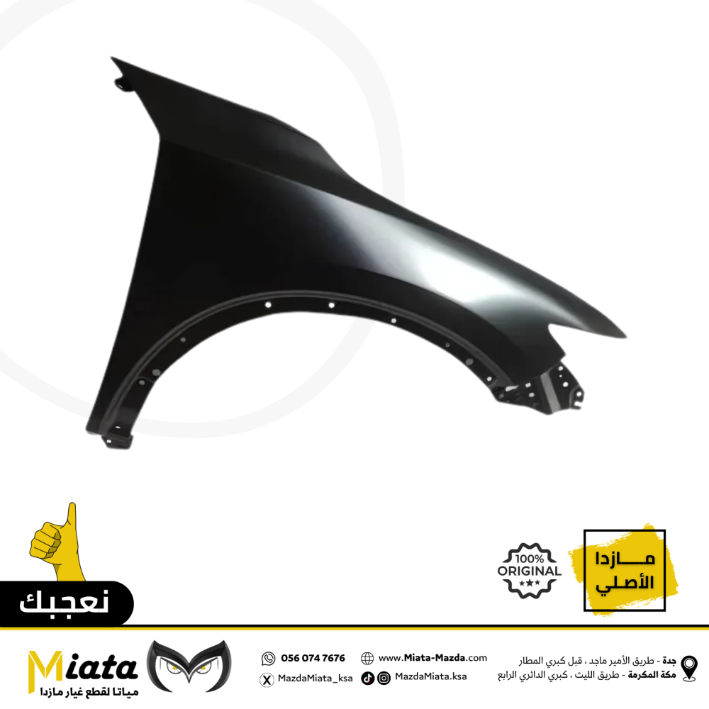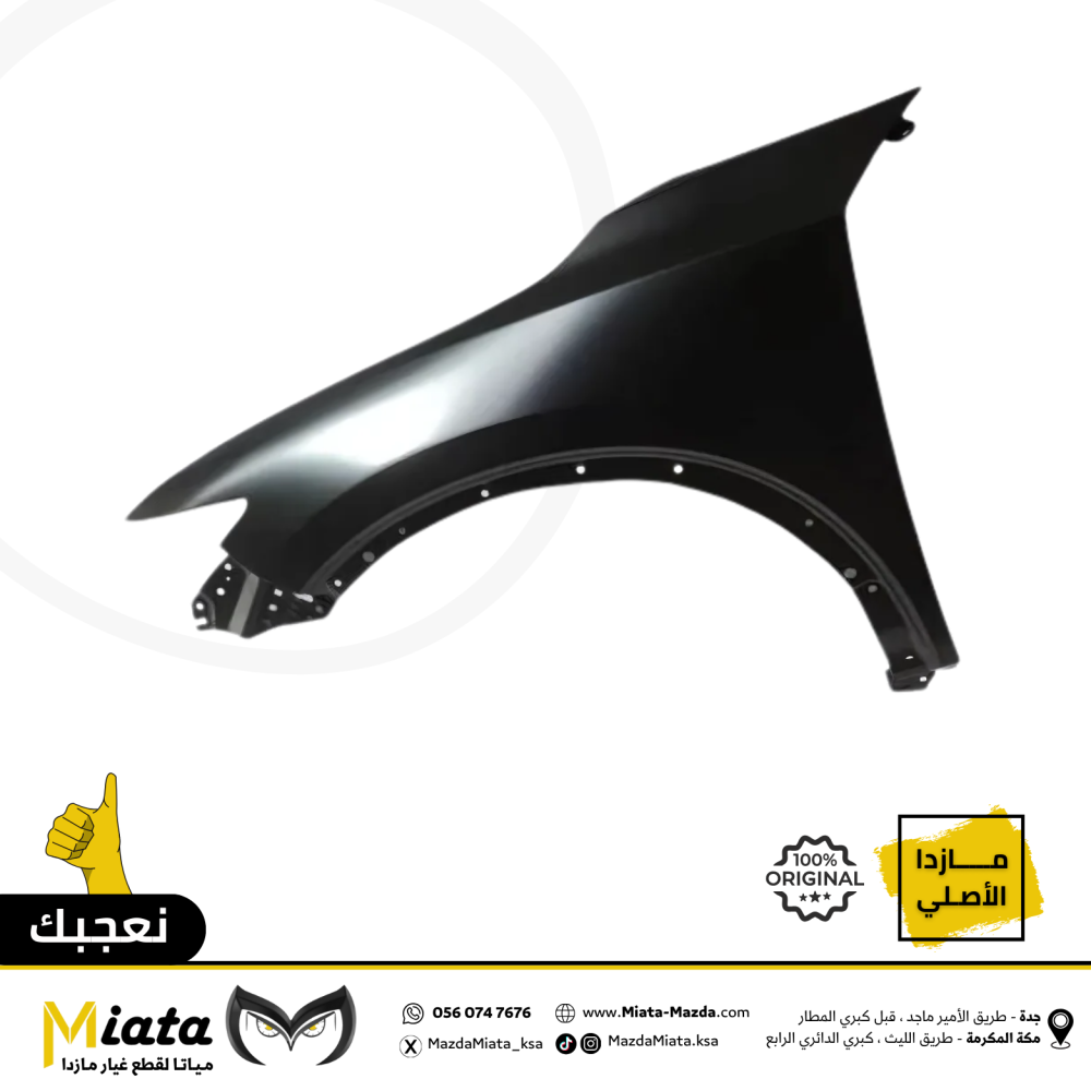 نبذة عن القطعة:رفرف أمامي (Front Fender) هو جزء من نظام الهيكل الخارجي في مازدا. يُستخدم لتغطية وحماية العجلة الأمامية والمنطقة المحيطة بها.وظيفته:حما...