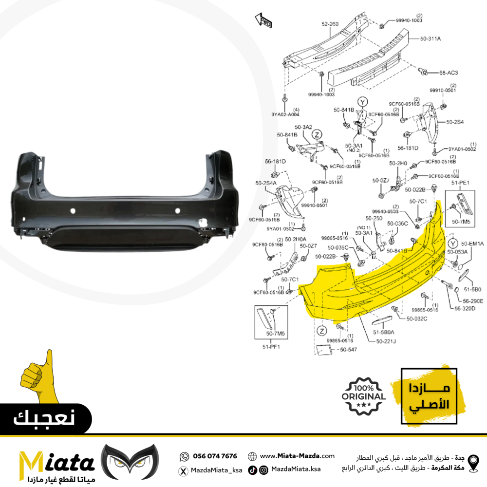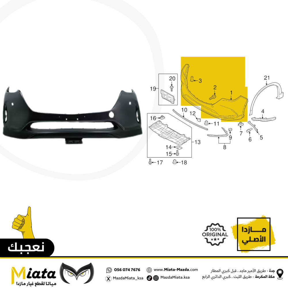 نبذة عن القطعة:الصدام الأمامي والخلفي (Front & Rear Bumper) هما جزءان من نظام الهيكل الخارجي في مازدا. يوفران حماية للسيارة من الصدمات الطفيفة مع ...