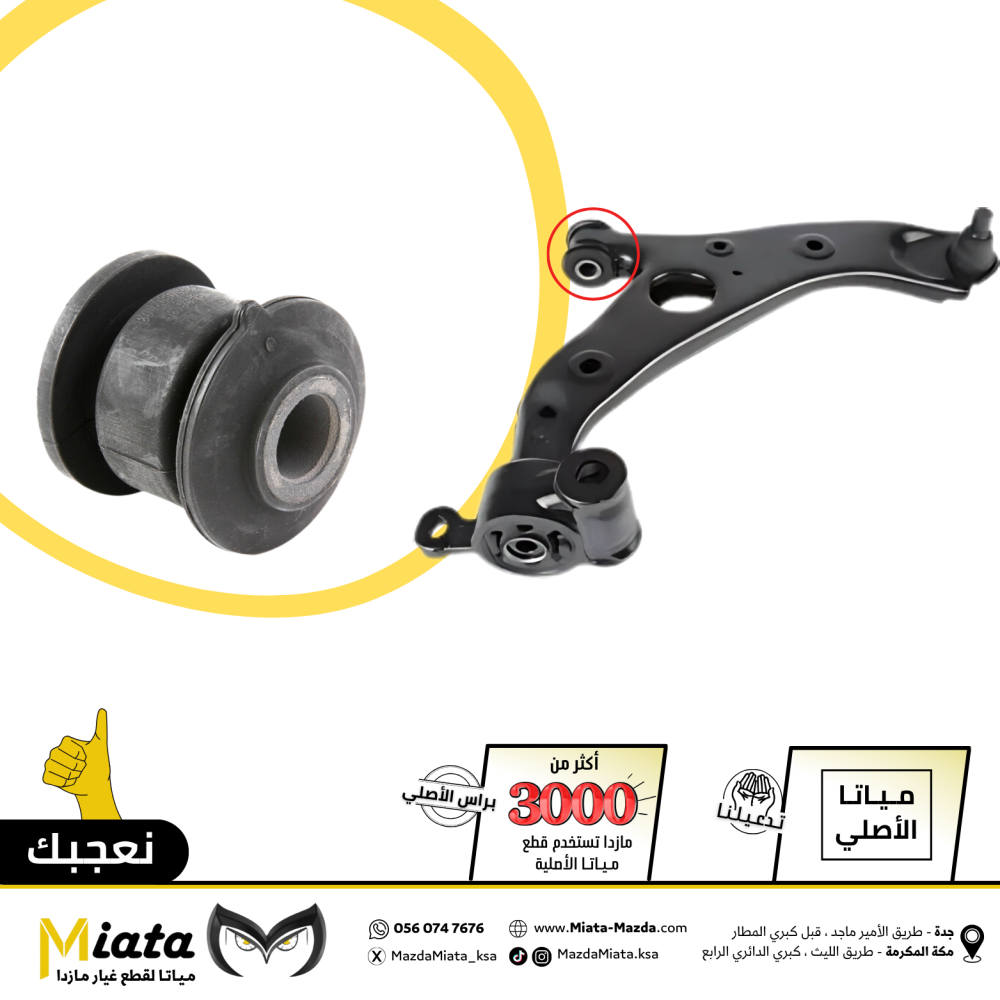 جلود المقص الأمامي (Front Control Arm Bushings) في سيارات مازدا هي قطع مطاطية مرنة توضع بين المقص الأمامي (Control Arm) وهيكل السيارة. تُعد من الأجزاء المهمة في نظام التعليق الأمامي، حيث تساعد على تقليل الاهتزازات والضوضاء الناتجة عن حركة السيارة، بالإضافة إلى تحسين استقرار العجلات الأمامية أثناء القيادة.