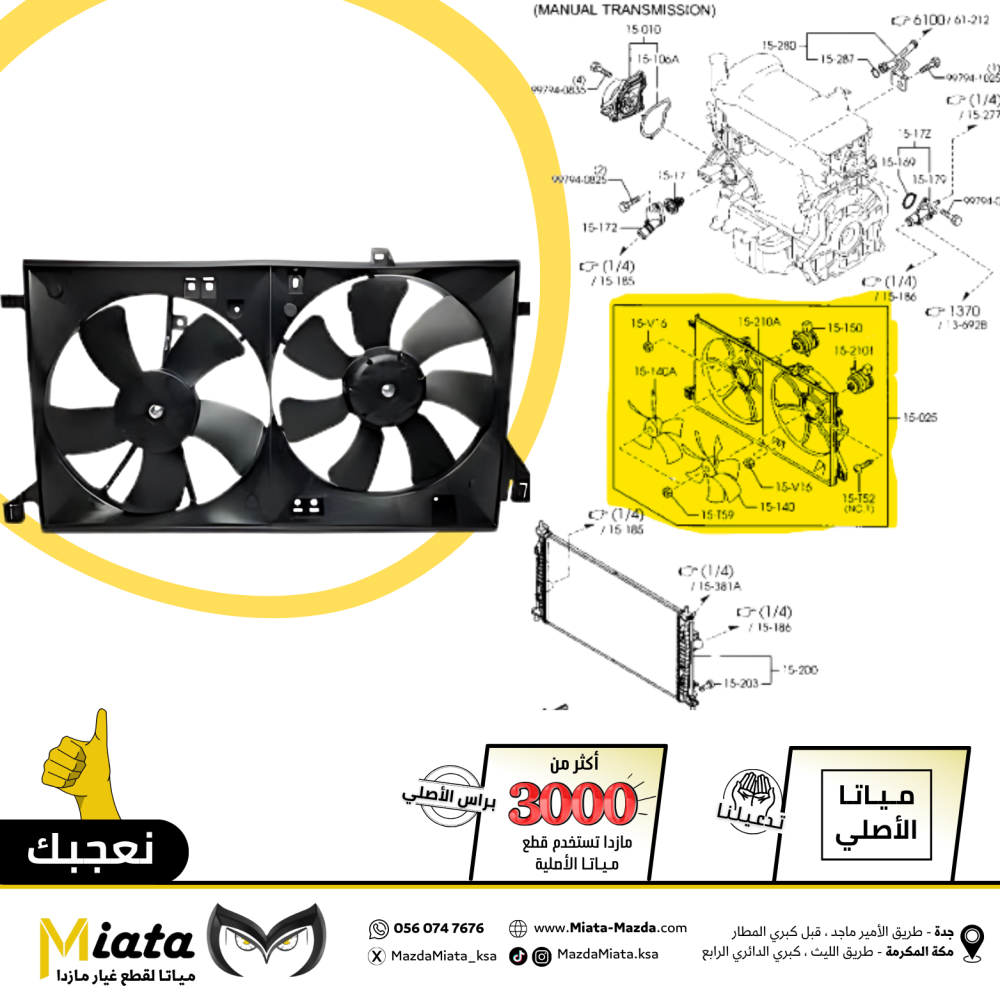 نبذة عن القطعة:جرم مروحة تبريد المكينة (Fan Shroud or Cooling Fan Base) هو القاعدة التي تُثبّت عليها مروحة تبريد المكينة. يعمل هذا الجرم كهيكل أساسي ي...