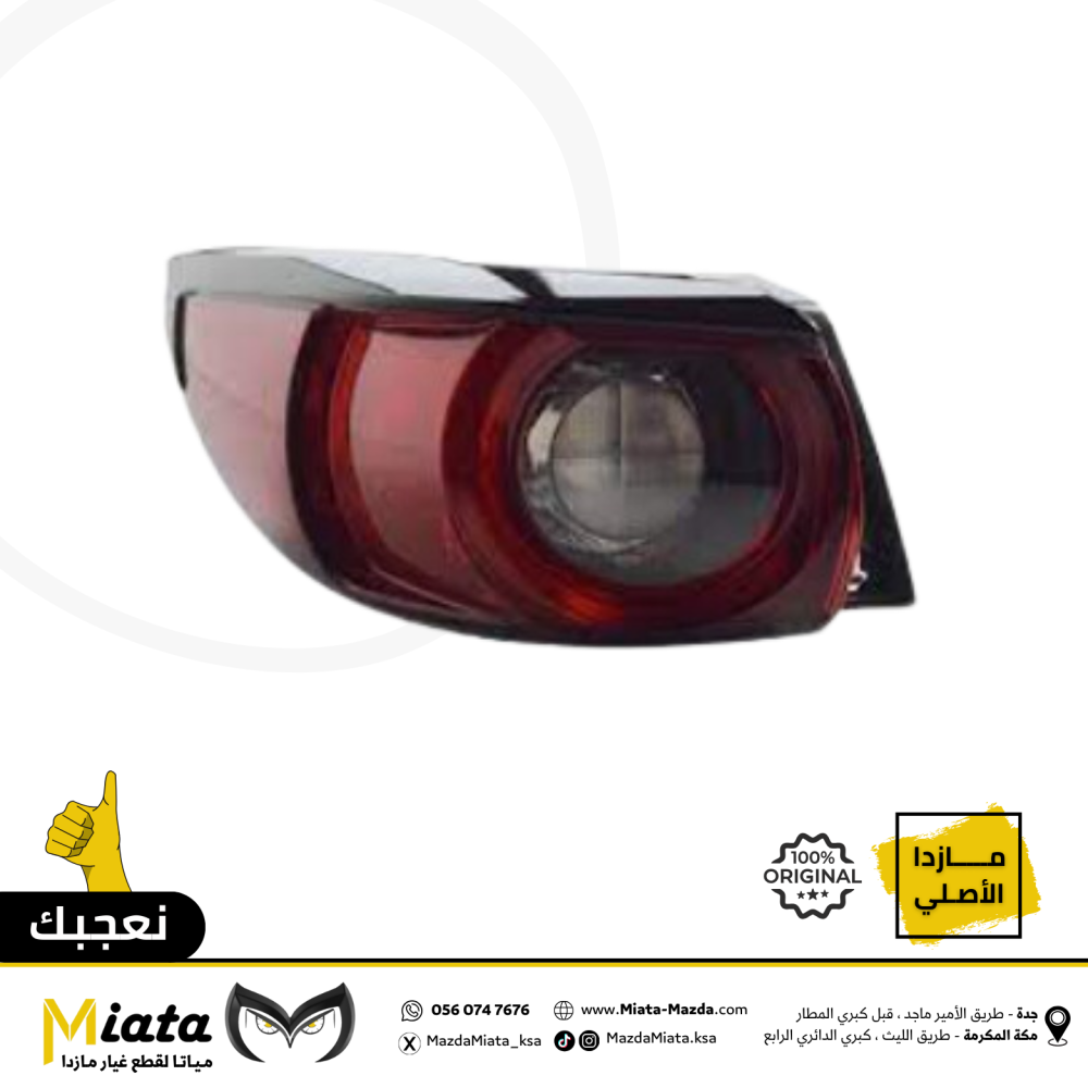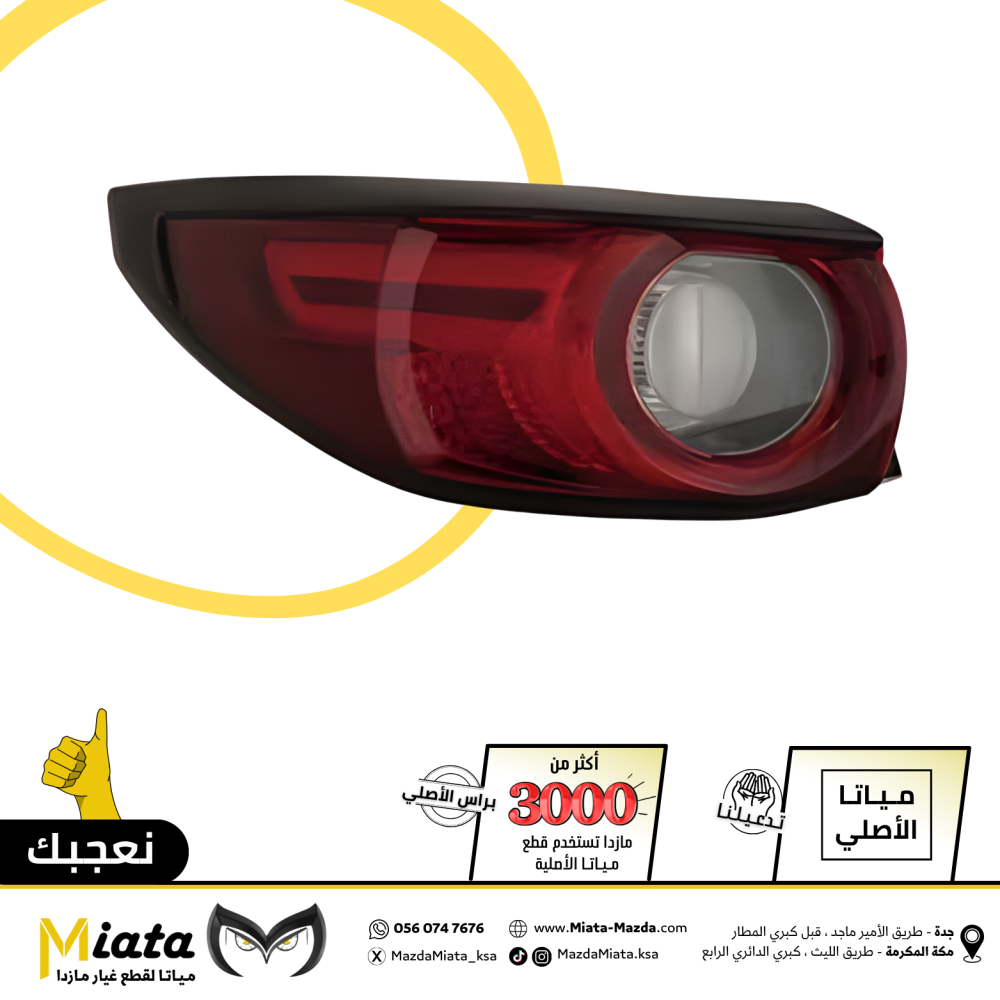نبذة عن القطعة:الاسطب الخلفي (Rear Tail Light) هو جزء من نظام الإضاءة الخلفي في مازدا. يُستخدم لتحسين رؤية السيارة من الخلف ويعمل كإشارة للمركبات الأخ...
