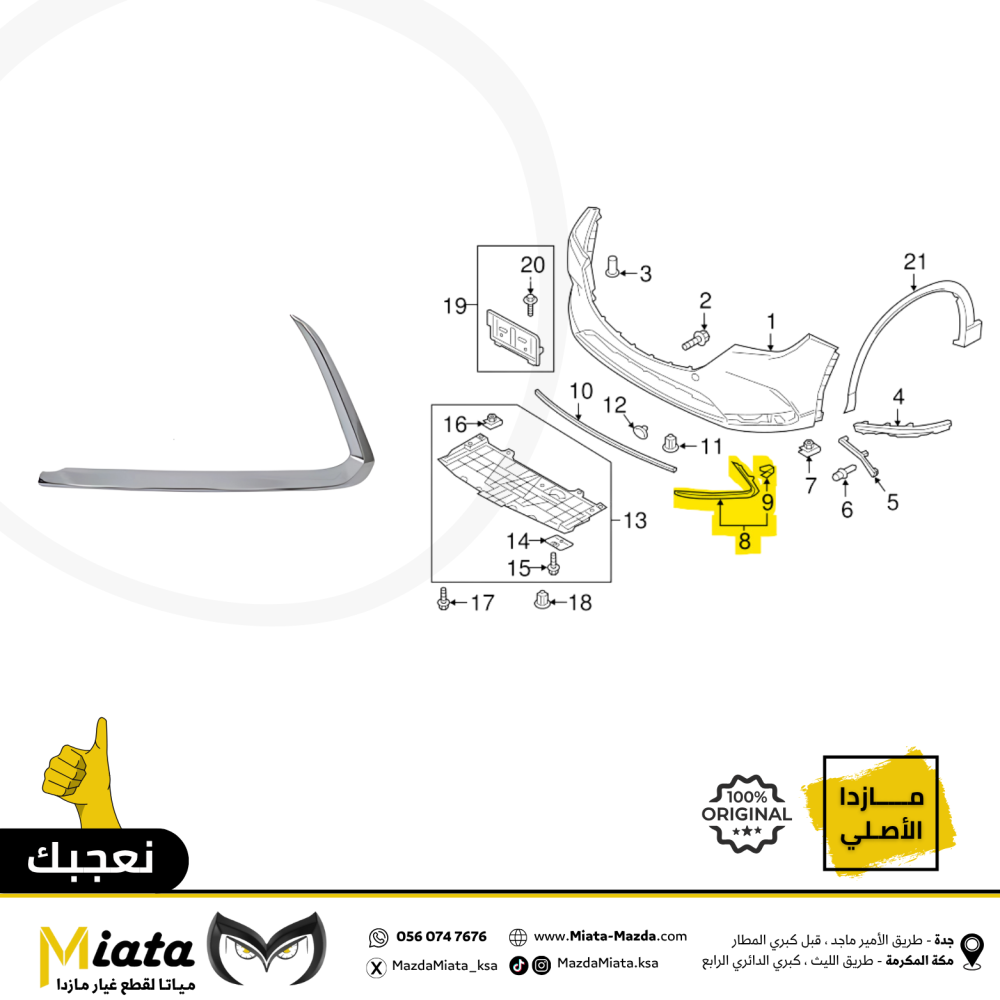 About the piece : Front Bumper Trim is part of Mazda's exterior body system . It is used to decorate and complete the appearance of the front bump...