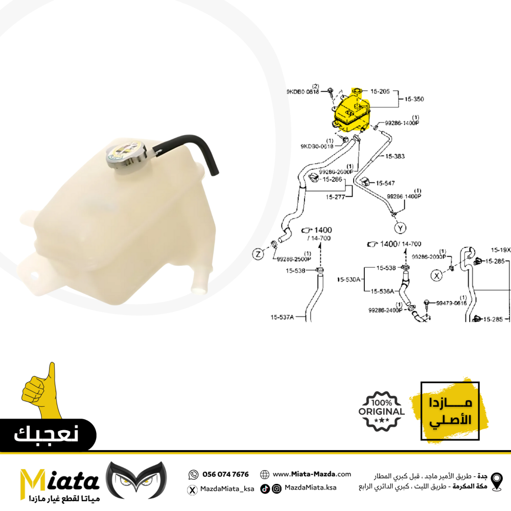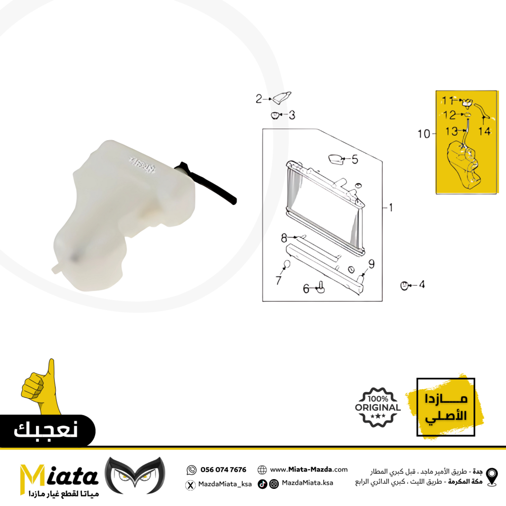 نبذة عن القطعة:قربة ماء الرديتر (Radiator Coolant Reservoir) هي حاوية مخصصة لتخزين سائل تبريد المحرك الزائد عن الحاجة، وتُستخدم في تنظيم مستوى سائل ال...