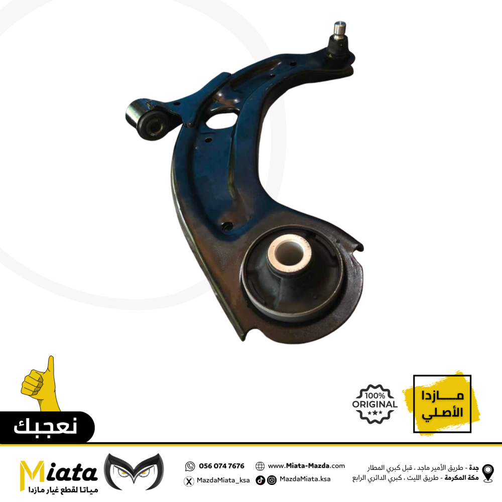 The front lower control arm (FLCA) in the Mazda CX-3 is a key part of the suspension system, connecting the car body to the front wheel. It contains bushings and a ball joint to facilitate wheel movement and absorb shocks while driving. This part is considered to be long-lasting, with an estimated lifespan of 100,000 to 150,000 kilometers , depending on driving conditions and maintenance.