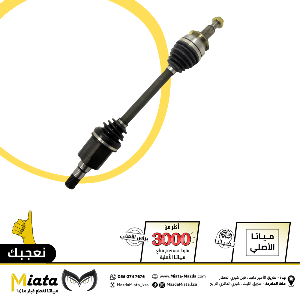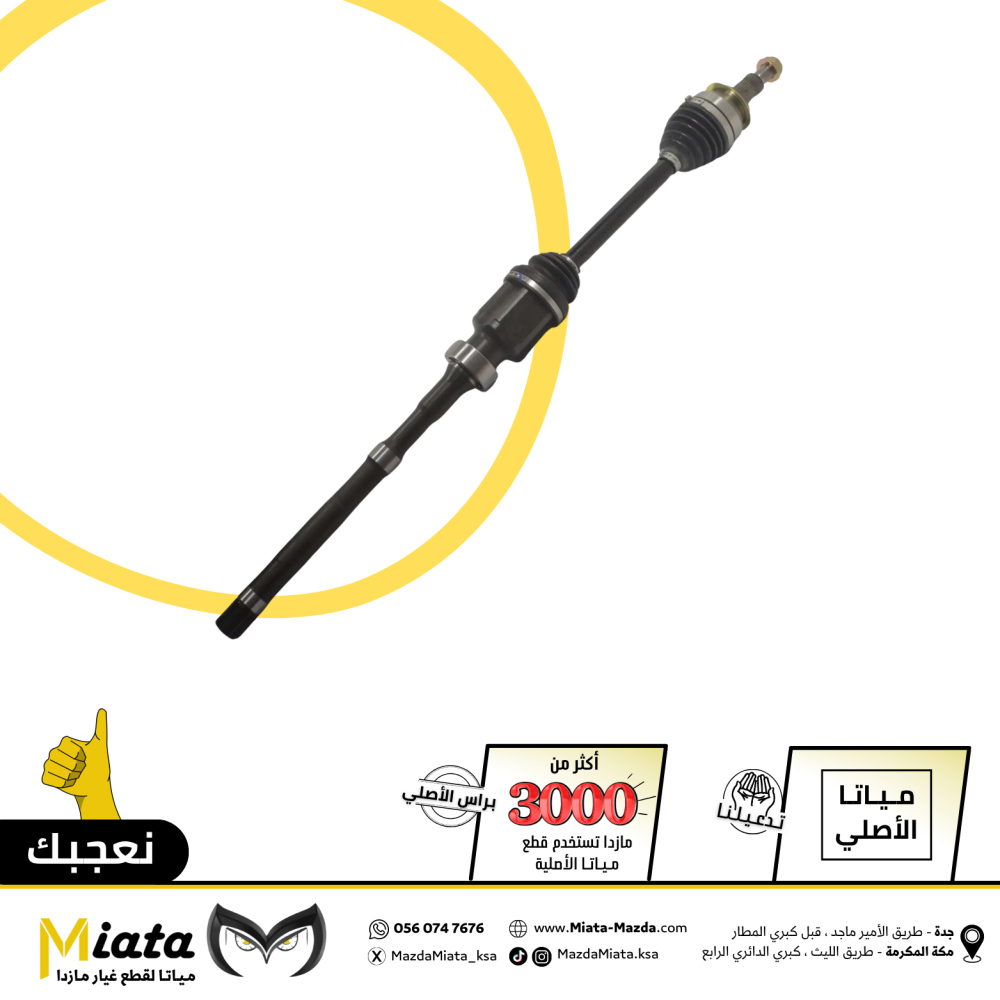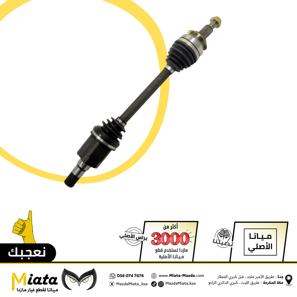 The front axle in the Mazda 3 is a key part of the transmission system, connecting the drive shaft to the control arms in the front wheels. The axle contains the CV Joint Bearing that allows the wheel to rotate smoothly, helping to transfer power from the engine to the front wheels. This part is a long-term part, typically lasting between 150,000 and 200,000 km depending on driving conditions and maintenance.