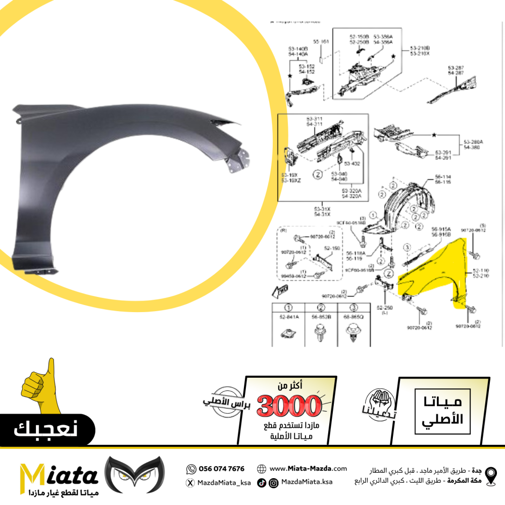 About the piece:A front fender is part of Mazda's body system. It is used to cover and protect the front wheel and the area around it.His job:Protects...