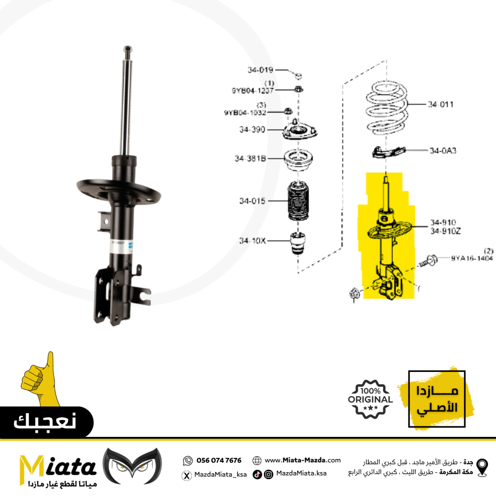 Shock absorbers in the Mazda CX-9 are an essential part of the suspension system, their function is to absorb shocks resulting from rough roads or bumps, which improves the stability and comfort of the car while driving. The shock absorbers are located at each wheel, and work to reduce the bounce of the car after hitting bumps and provide a comfortable and stable ride. They are considered a long-term part, and their service life ranges from 80,000 to 120,000 kilometers depending on driving conditions.