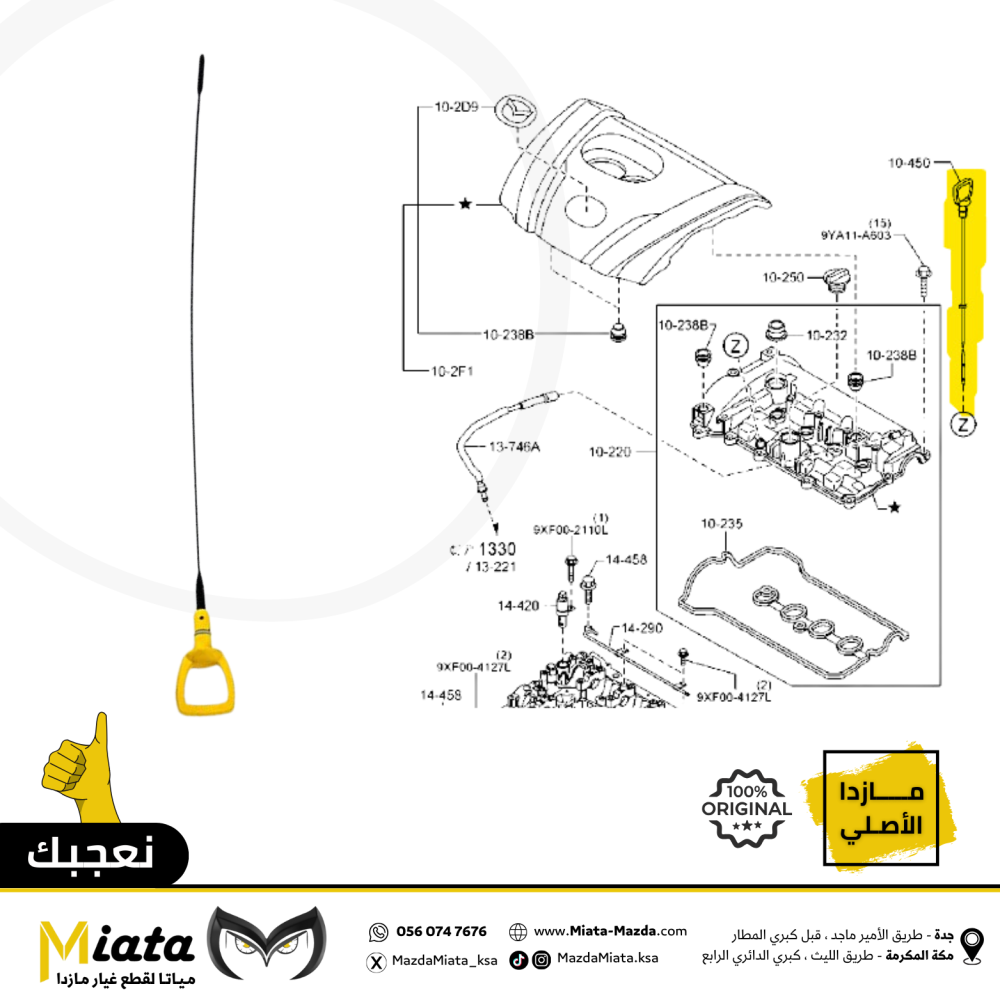 The Mazda engine oil dipstick is a metal tool used to measure the oil level inside the engine, helping to ensure the proper amount for the engine to operate efficiently.