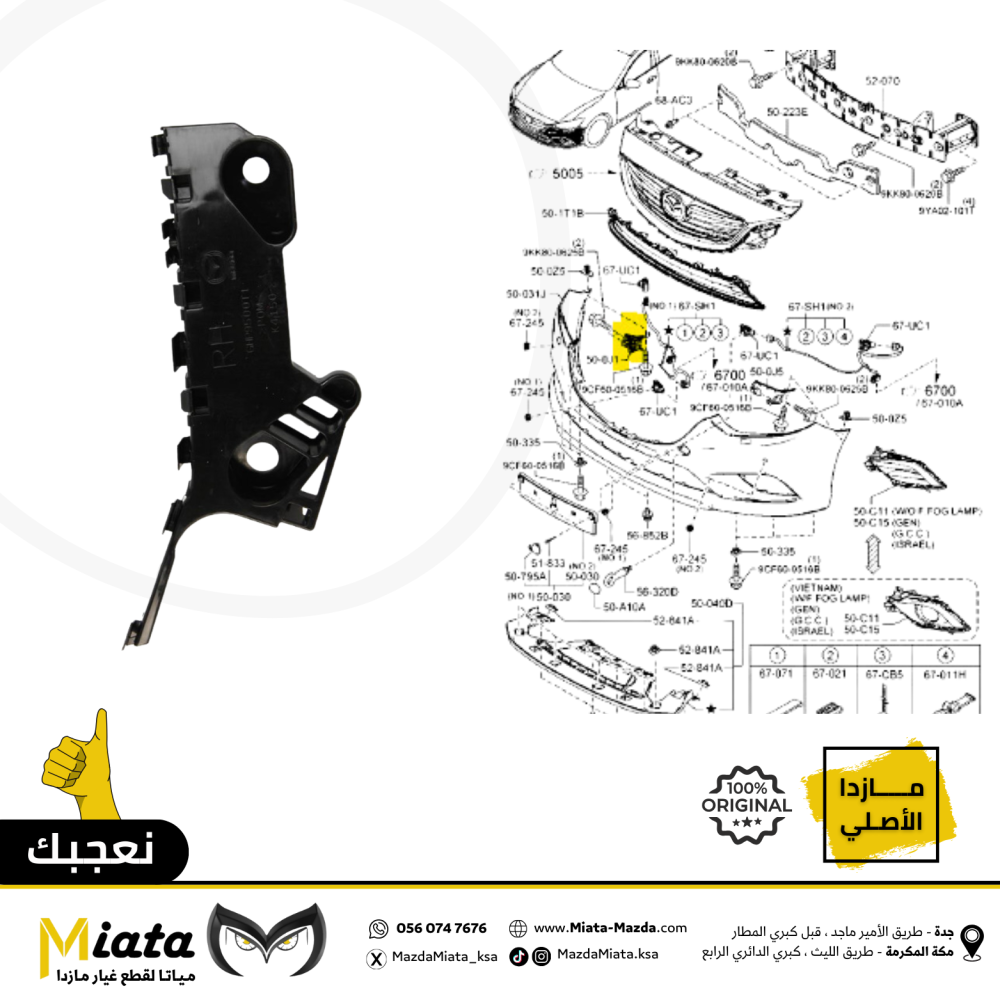 نبذة عن القطعة:عظمة صدام (Front Bumper Bracket) هي جزء من نظام الهيكل الخارجي في مازدا. تُستخدم لتثبيت الصدام الأمامي في مكانه بشكل محكم.وظيفتها:تثبيت...