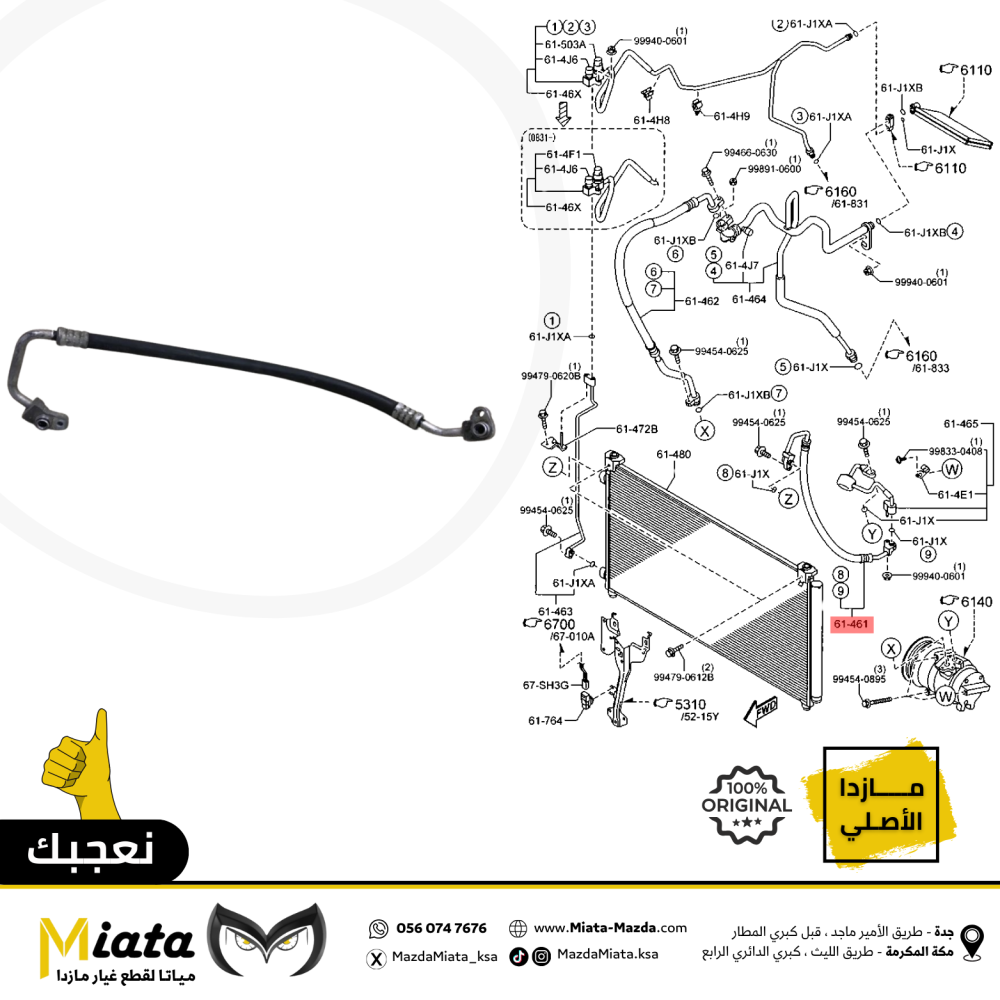 نبذة عن القطعة:لي مكيف حار (ضغط عالي) (High-Pressure Air Conditioning Hose) هو جزء من نظام التكييف في مازدا. يُستخدم لنقل سائل التبريد بضغط عالٍ بين م...