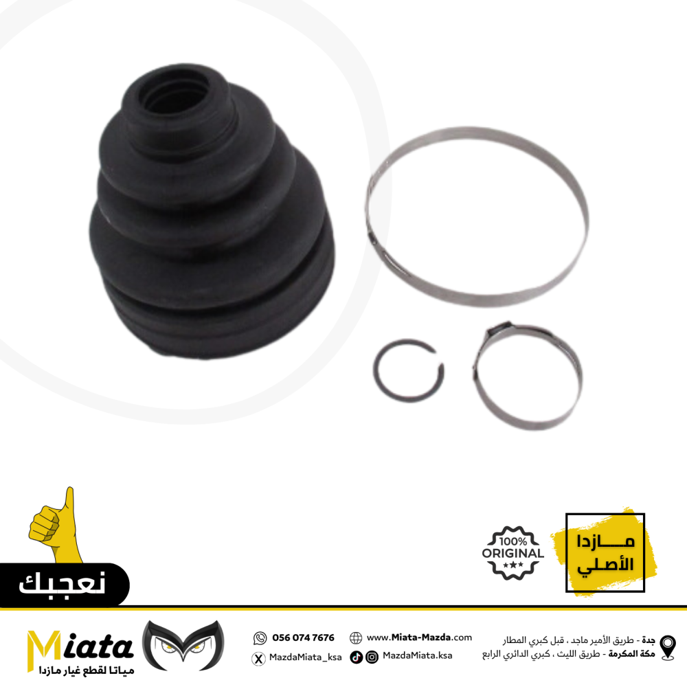 The CV Boot in Mazda vehicles is a flexible rubber piece designed to protect the CV Joint from dirt, dust, and moisture. It also keeps grease inside the joint to ensure smooth movement and long life. This boot is located at the ends of the CV Joint Axle Shaft.