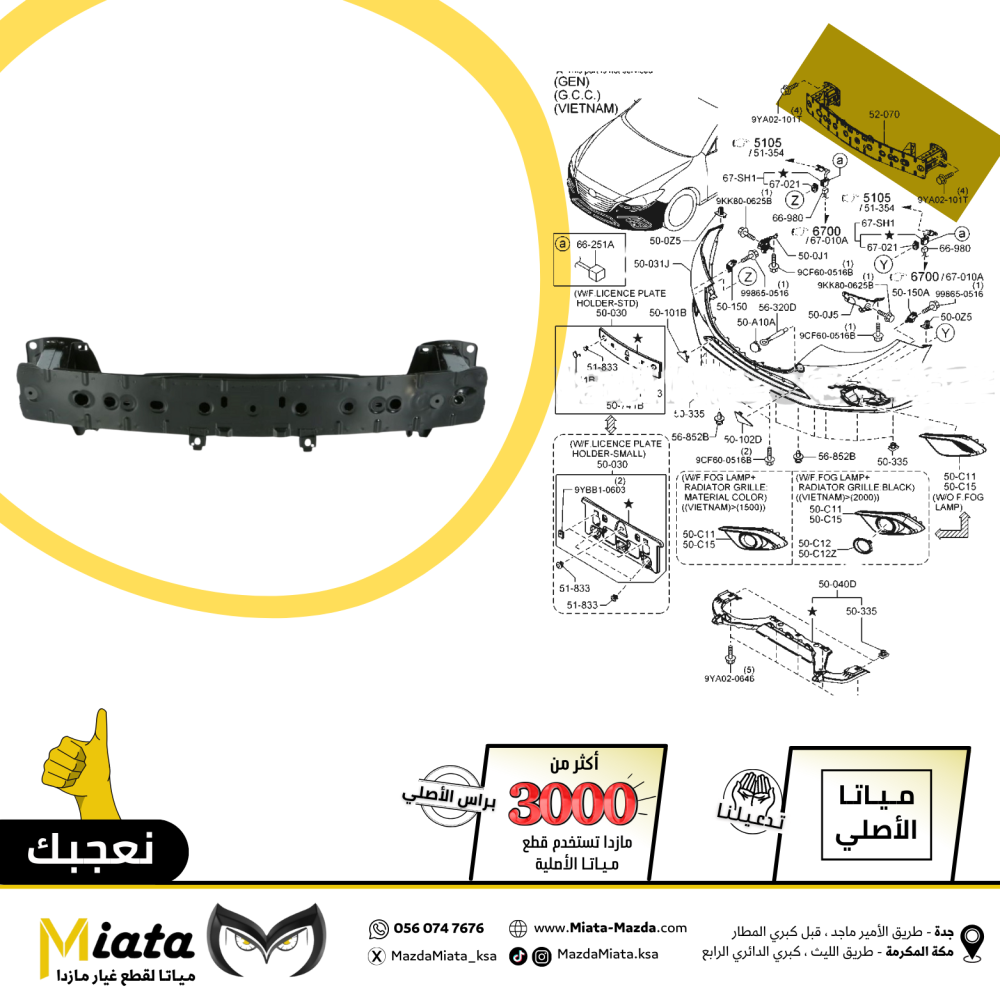 نبذة عن القطعة:جسر صدام (Front Bumper Reinforcement) هو جزء من نظام الهيكل الخارجي في مازدا. يُستخدم لتقوية الصدام الأمامي وامتصاص الطاقة الناتجة عن ا...