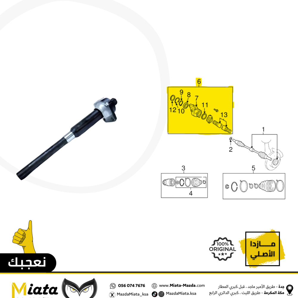 The front drive shaft in Mazda vehicles is a vital component of the transmission system. Also known as the front drive shaft, it connects the transmission to the front wheels, allowing power to be transferred from the engine to the wheels to propel the vehicle forward.
